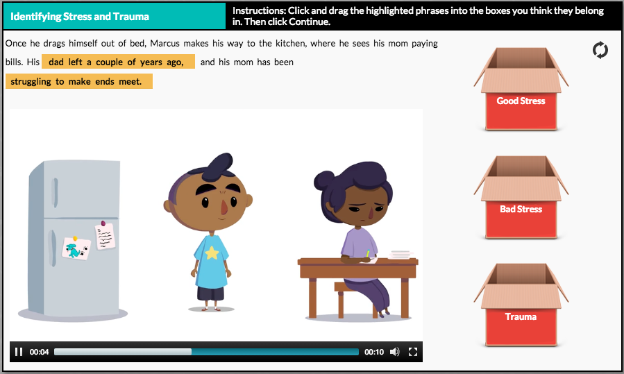 Though they’ve traditionally developed in-person interventions, our partners chose our e-learning platform because they thought an online, self-paced, multimedia format would appeal to their target audience of 12- to 18-year-olds. The course features innovative game and interactive technologies to teach participants how to reduce distress and improve coping skills. And the curriculum reinforces and extends their existing interventions for trauma recovery.