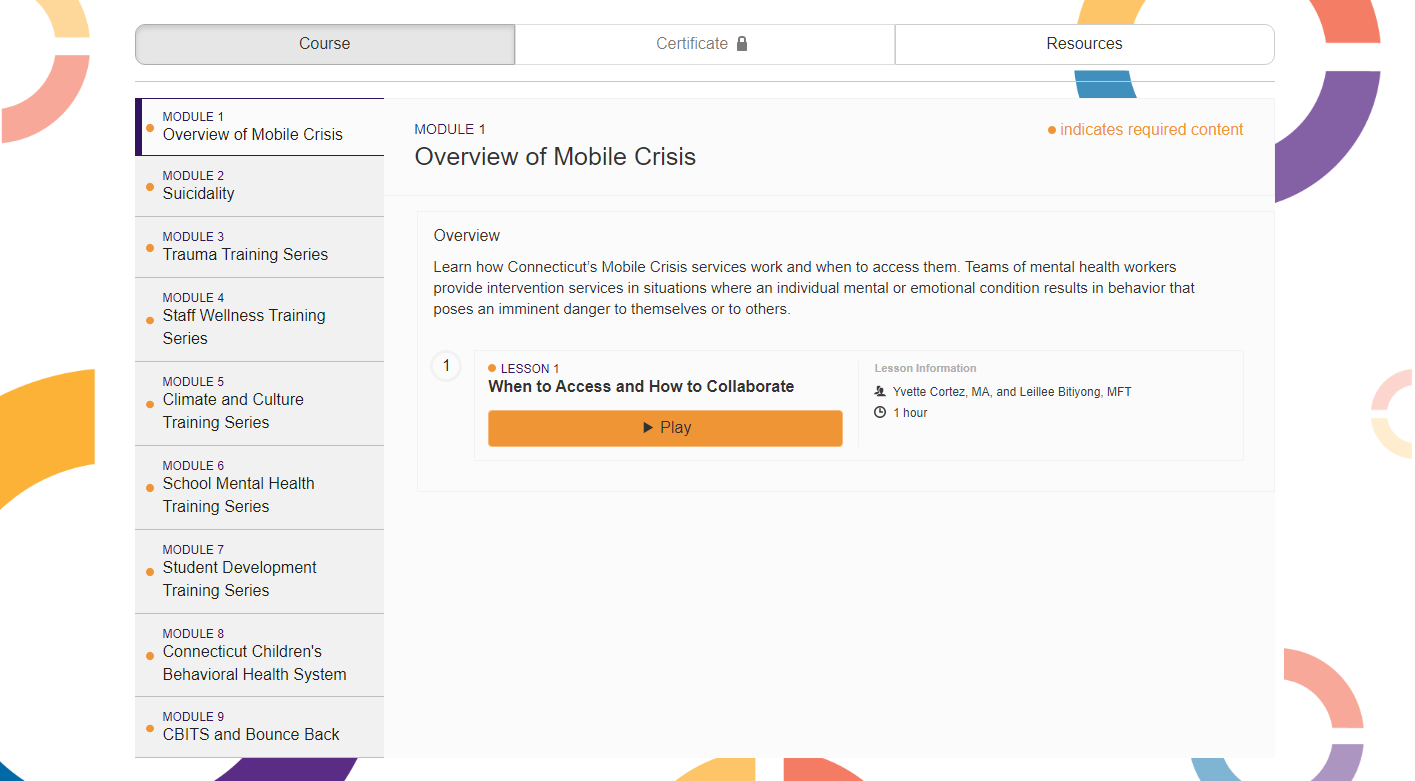 Additional courses, each focused on a particular child-serving setting, including schools, the juvenile justice and child welfare systems, and pediatric primary care, will become available over the next several years.